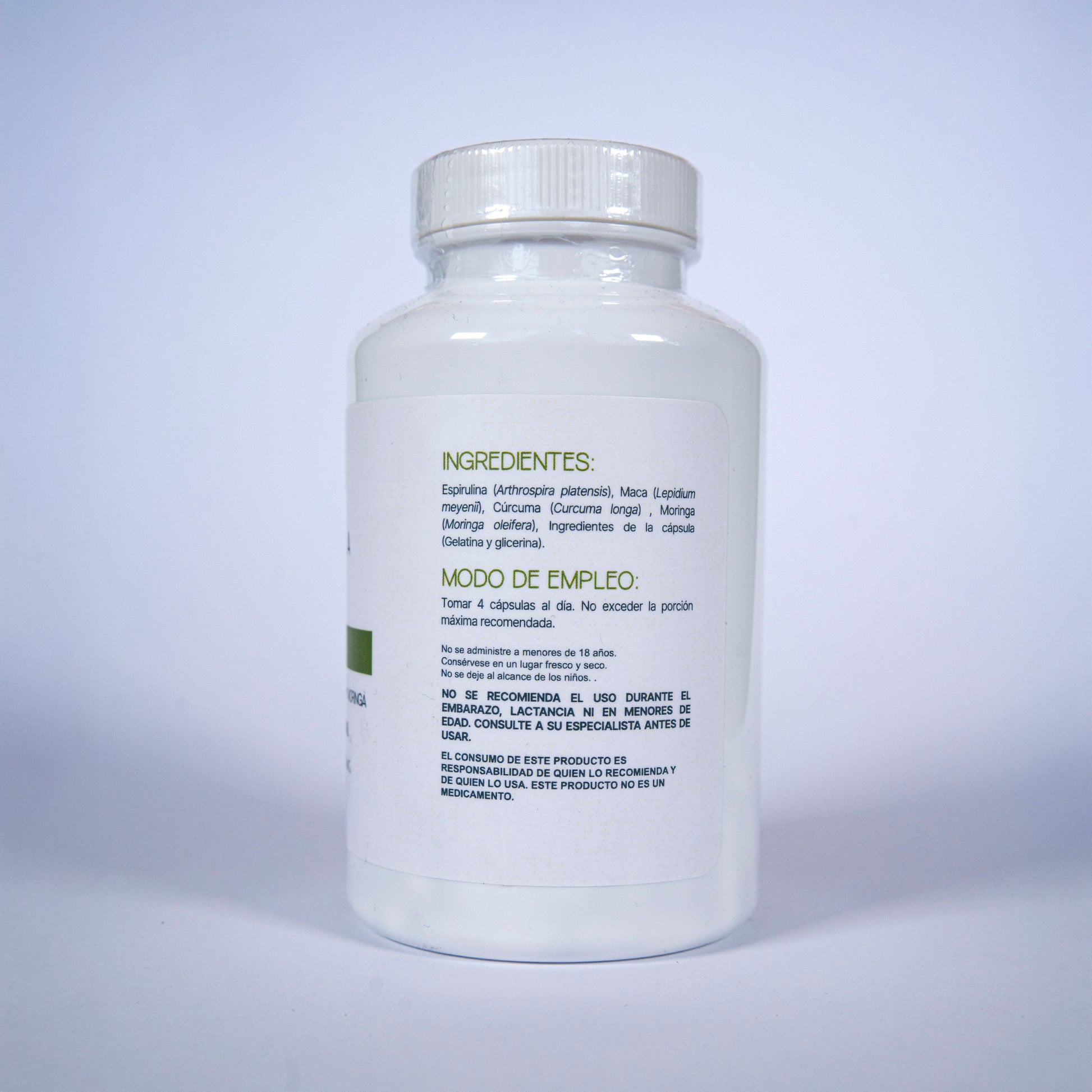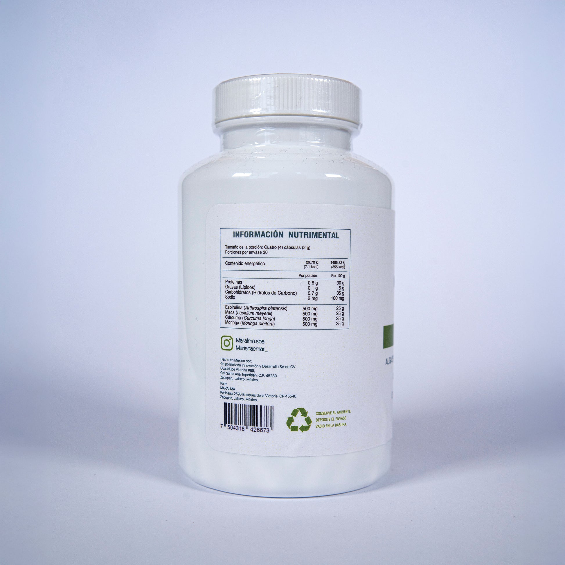• Envase con 120 cápsulas de 500 mg.